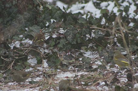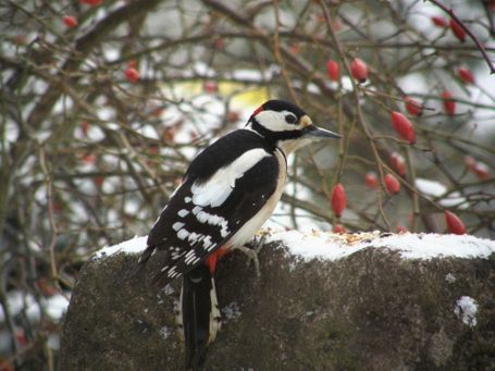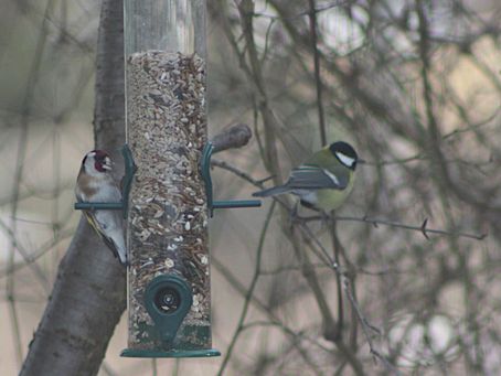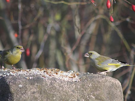 Durch die vielfältige Struktur in unserem Garten sind mittlerweile viele verschiedene Vogelarten an den winterlichen Futterstellen zu beobachten: Kohlmeisen und Blaumeisen, Grünfinken, Buchfinken und Distelfinken oder auch Buntspecht und Rotkehlchen sind häufiger Gäste an den verschiedenen Futterstellen und auch Amseln und Eichelhäher kommen gelegentlich vorbei, um sich am energiereichen Futter zu stärken.